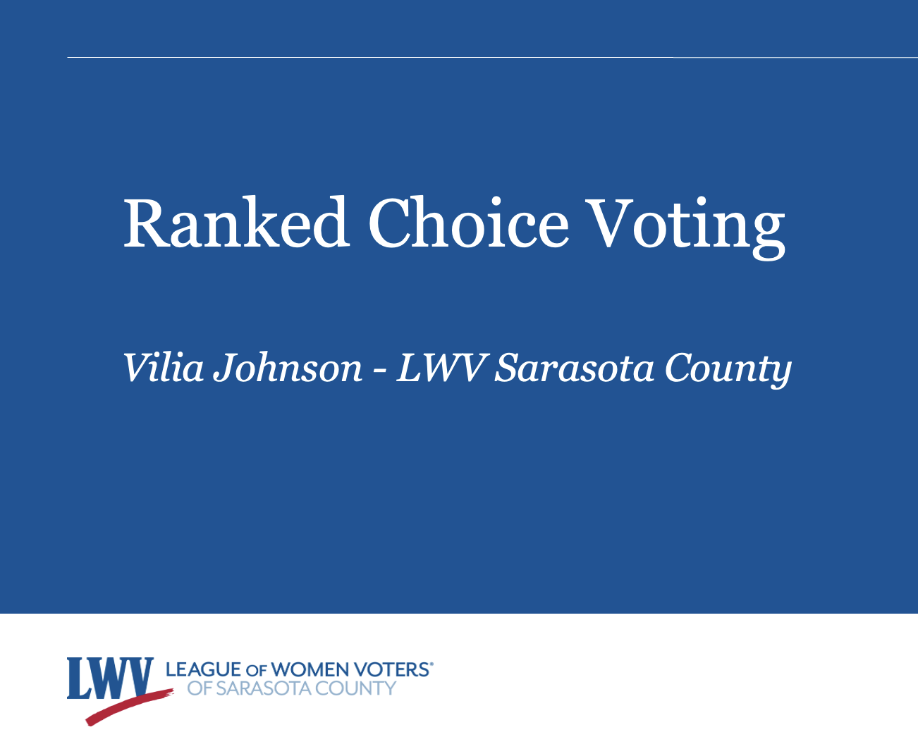 The League of Women Voters is dedicated to educating voters so they can make informed decisions when they cast their ballot. As part of this mission, we offer Speakers Bureau presentations. No fee is charged for these presentations, but an honorarium to our 501(c)(3) Education Fund would be greatly appreciated.